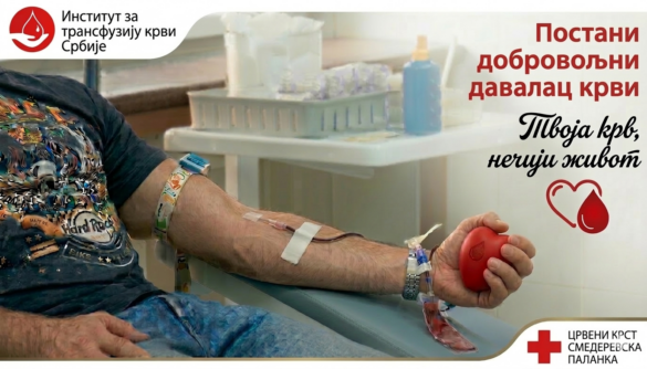 Crveni krst Smederevska Palanka, u saradnji sa Institutom za transfuziju krvi Srbije, poziva sve zdrave sugrađane da se pridruže predstojećoj akciji dobrovoljnog davanja krvi.