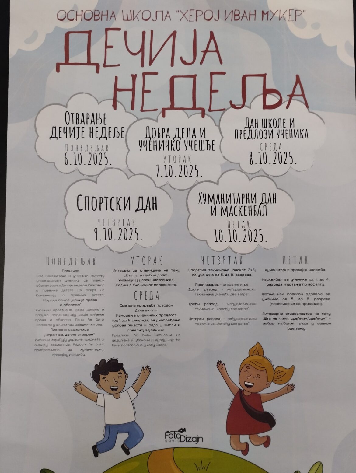 U Osnovnoj školi „Heroj Ivan Muker“ obeležava se Dečija nedelja, tradicionalna manifestacija posvećena pravima deteta, stvaralaštvu i promociji vrednosti detinjstva.