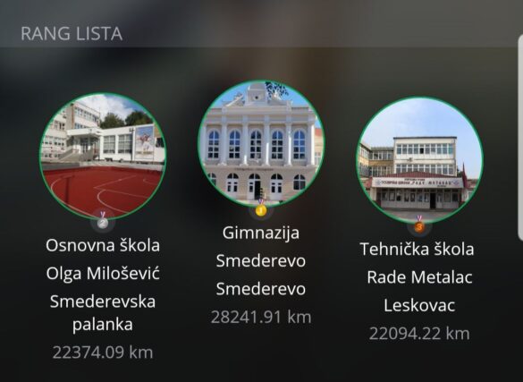 Prema podacima na sajtu Evropske nedelja sporta, najviše kilometara je sakupljeno za Gimnaziju Smederevo koja je osvojila prvo mesto sa 28241.91 km. Na drugom mestu je OŠ „Olga Milošević” iz Smederevske Palanke sa 22347.09 km, dok je TŠ „Rade Metalac” iz Leskovca sa 22094.22 km zauzela treće mesto.