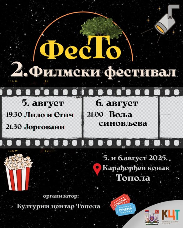 Kulturni centar Topola 5. i 6. avgusta organizuje drugi filmski festival na otvorenom FesTo.