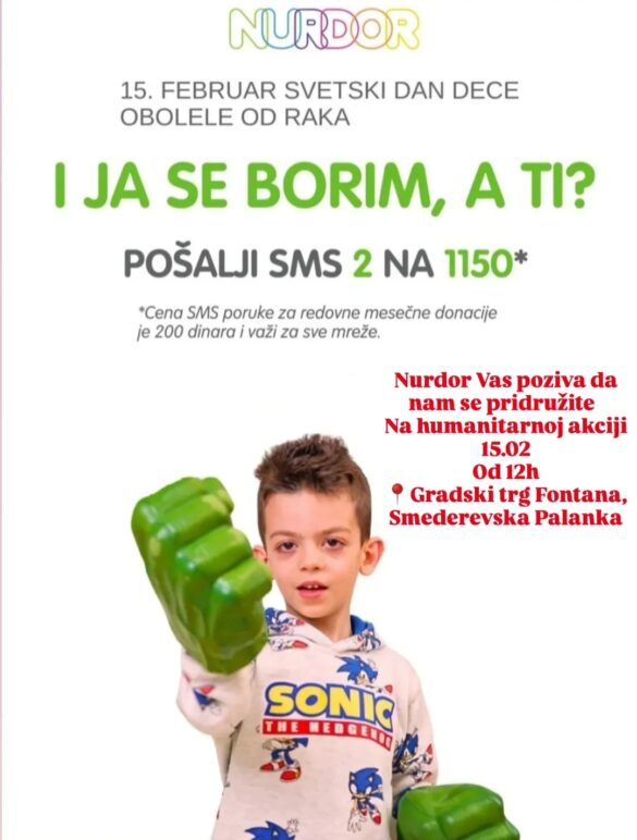 Svetski dan dece obolele od raka obeležava se u nedelju, 15. februara, a Nacionalno udruženje roditelja dece obolele od raka (NURDOR) će tim povodom organizovati susrete dece, roditelja, medicinskih radnika, volontera, donatora i svih onih koji svojim angažovanjem doprinose unapređenju oblasti pedijatrijske hematoonkologije u Srbiji.