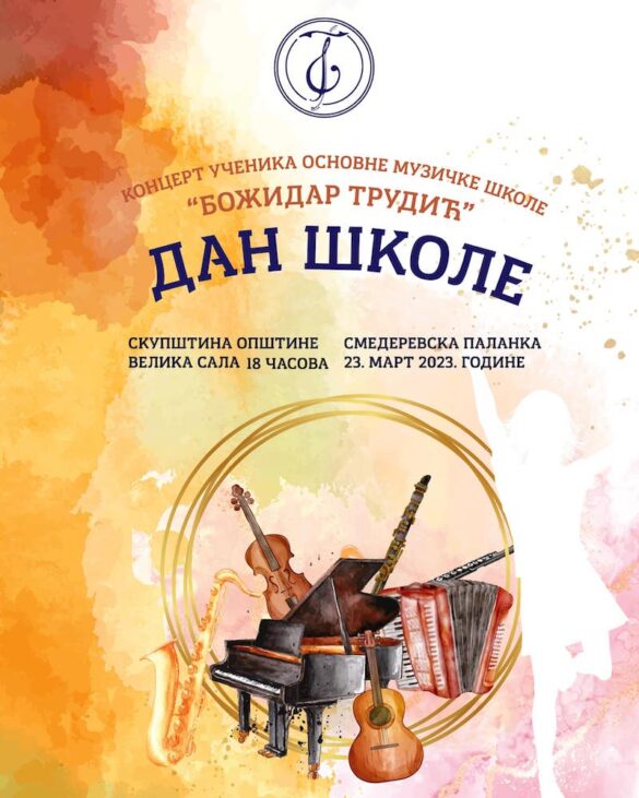 Povodom dana škole , učenici OMŠ “Božidar Trudić” održaće koncert u sali SO Smederevska Palanka u četvrtak 23. marta, sa početkom u 18 časova.