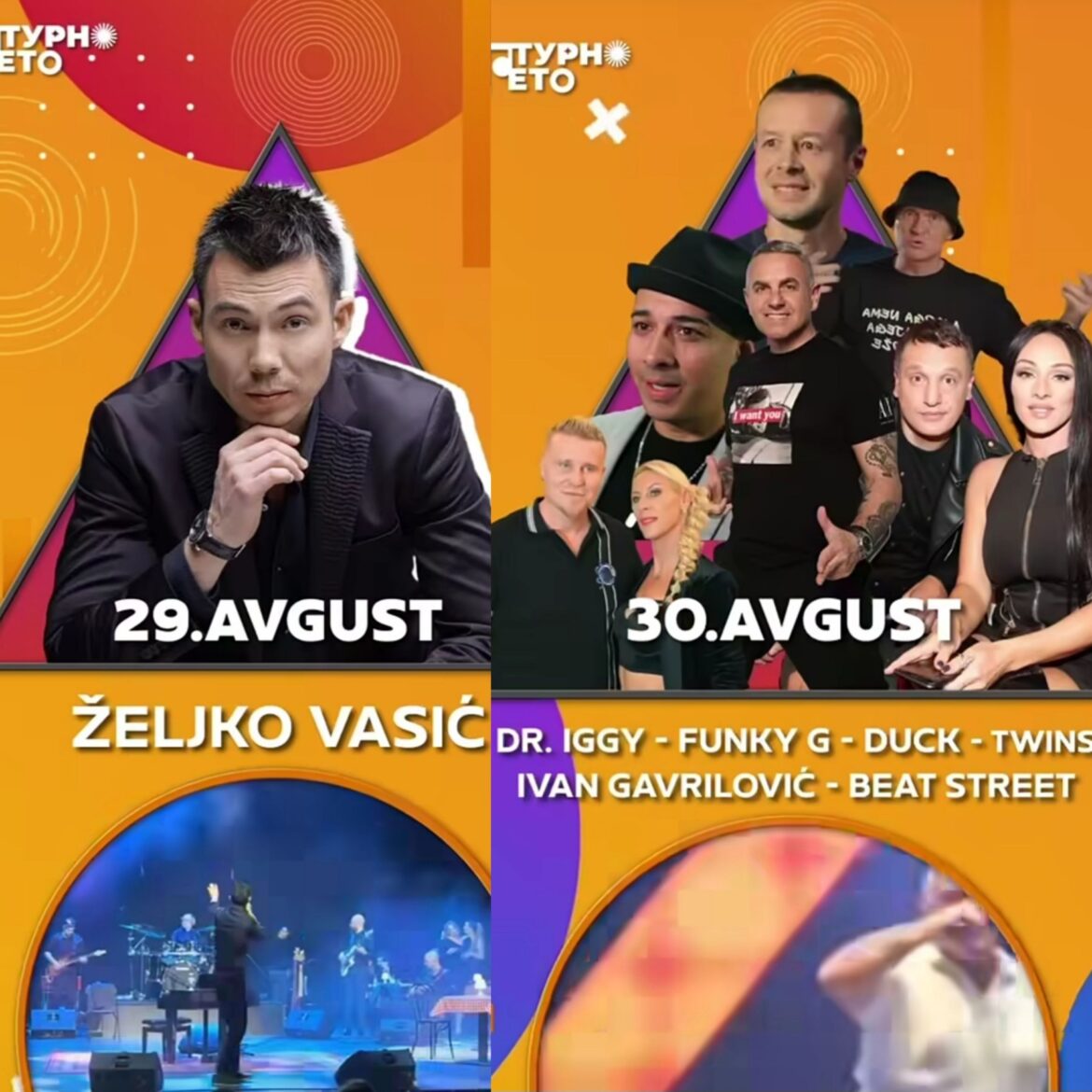 Koncert Željka Vasića biće održan 29. avgusta od 22 časa, dok će 30. avgusta u isto vreme, publiku oduševiti energični plesni spektakl devedesetih, kao i poznati izvođači.