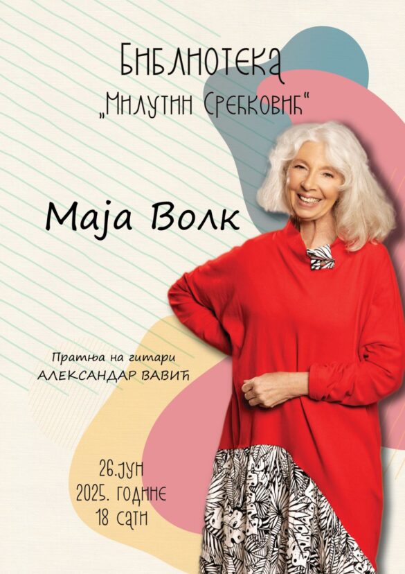 Biblioteka „Milutin Srećković“ najavljuje posebno kulturno veče sa Majom Volk, poznatom glumicom, muzičarkom i spisateljicom, koje će se održati u četvrtak, 26. juna 2025. godine, sa početkom u 18 časova.