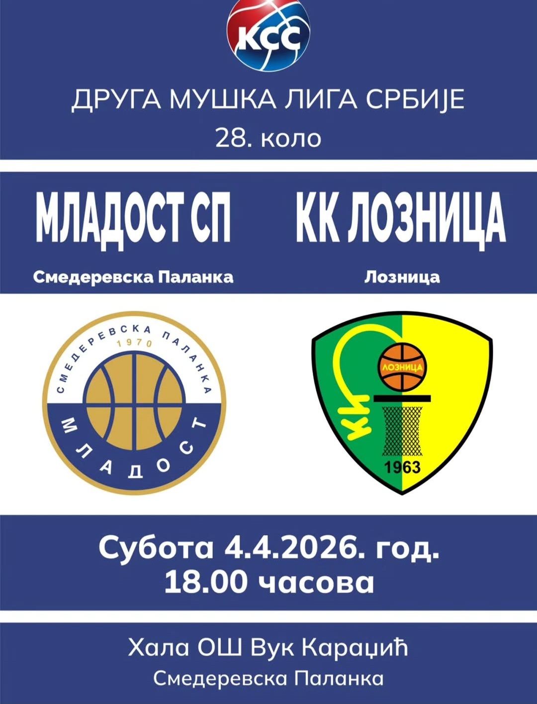 U okviru 28. kola Druge muške lige Srbije, košarkaši Mladosti SP dočekuju na svom terenu ekipu Loznice.