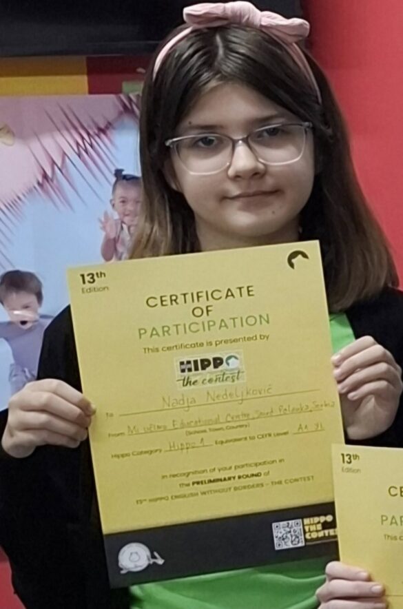 Polaznica Edukativnog centra “Mi učimo” iz Smederevske Palanke Nađa Nedeljković plasirala se na državno finale HIPPO takmičenja, najveće svetsko takmičenje iz engleskog jezika u kategoriji Hippo 1.