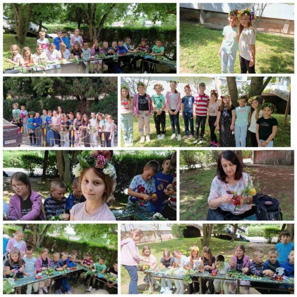 Učenici od 1. do 4. razreda OŠ „Đorđe Jovanović“ kroz timski rad, zajedništvo i saradnju pleli su venčiće za praznik Đurđevdan.