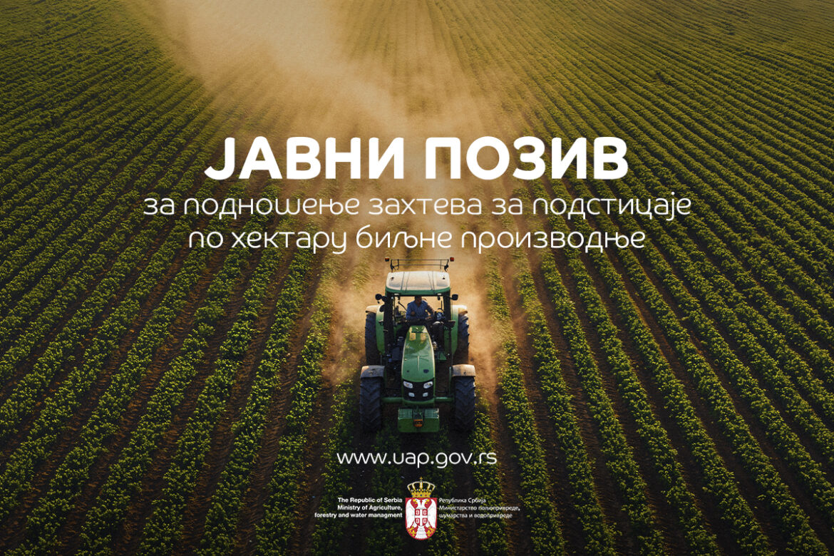 Ministarstvo poljoprivrede, šumarstva i vodoprivrede – Uprava za agrarna plaćanja raspisala je Javni poziv za podnošenje zahteva za ostvarivanje prava na osnovne podsticaje u biljnoj proizvodnji.