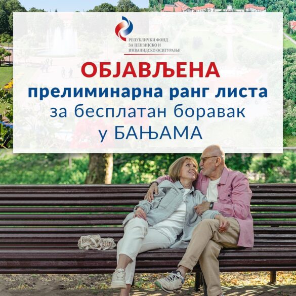 Na oglasnim tablama organizacija korisnika penzija, odnosno Saveza penzionera Srbije i Udruženja penzionera Srbije „Nezavisnost”, i oglasnim tablama svih organizacionih jedinica Fonda PIO objavljene su preliminarne rang-liste korisnika penzija koji su ostvarili pravo na besplatnu rehabilitaciju u banjama Srbije.