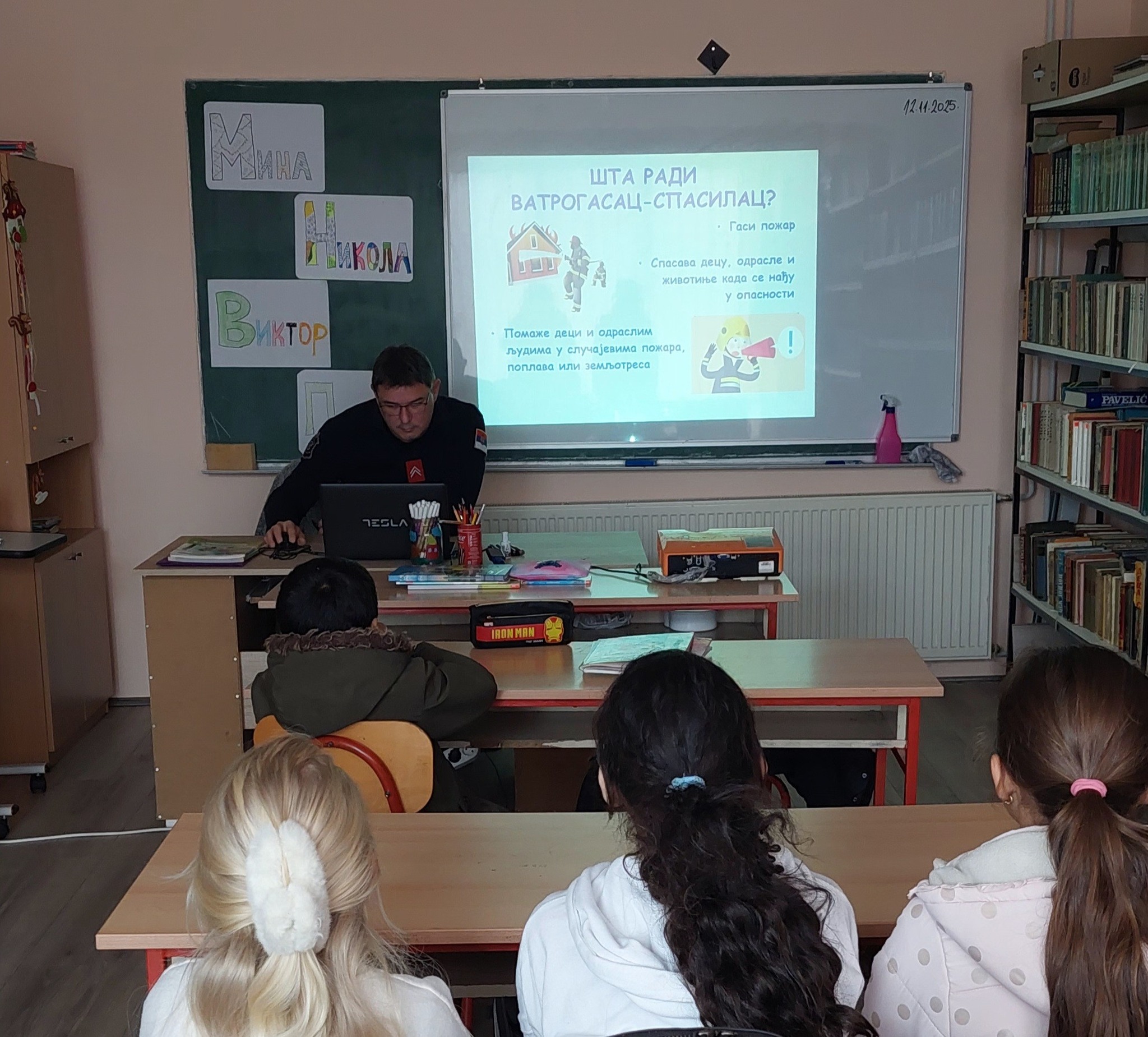 U okviru projekta „Zajedno i bezbedno kroz detinjstvo“, u Osnovnoj školi „Milija Rakić“ u Cerovcu održana je edukativna radionica na temu „Bezbednost dece u vanrednim situacijama“, koju je realizovao predstavnik Vatrogasno-spasilačke jedinice.