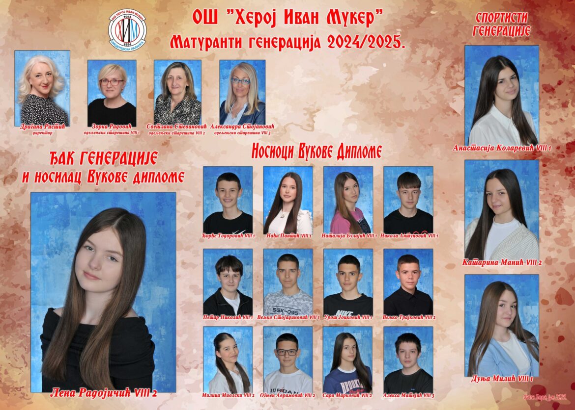 Ova generacija ostavlja dubok trag u životu škole – po svojim postignućima, drugarstvu i predanom radu. Đak generacije i nosilac Vukove diplome je Lena Radojičić, a titulu Sportiste generacije ponele su: Anastasija Kolarević, Katarina Manić i Dunja Milić.