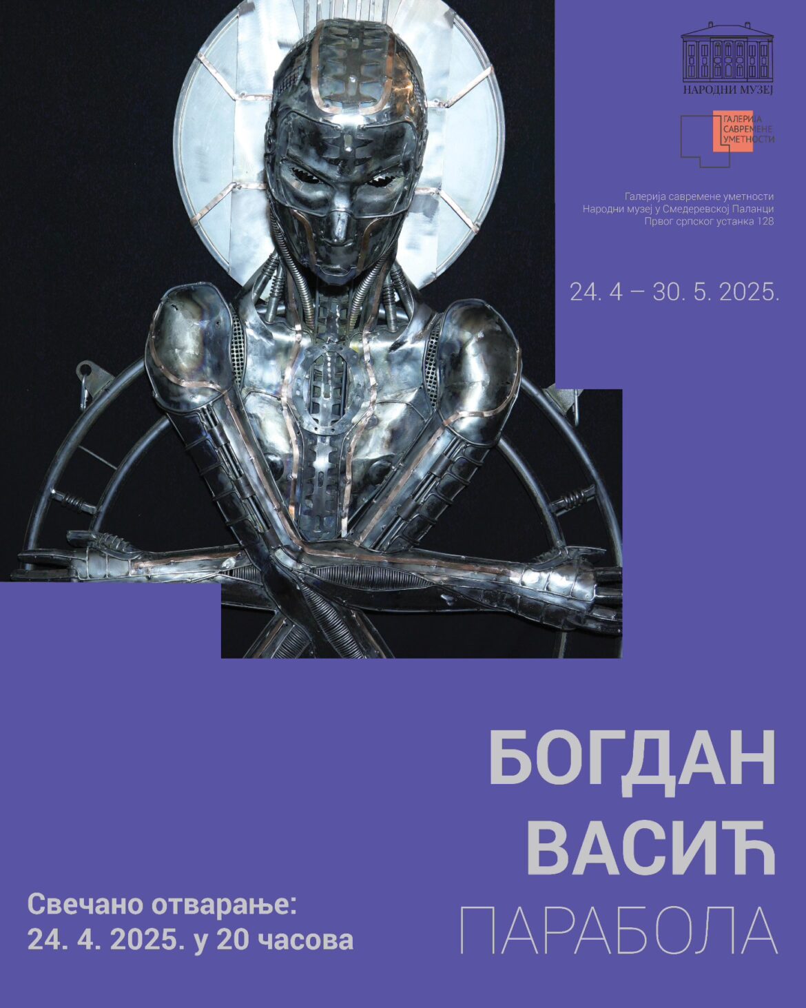 Izložba skulptura „Parabola“ Bogdana Vasića predstavlja promišljen umetnički izraz koji povezuje umetnost sa drevnim znanjima i simbolima. U autorovim radovima metal nije samo gradivni materijal, već ima simbolično značenje i važnu ulogu u samom procesu nastanka dela. Vasićeve skulpture inspirisane su drevnim verovanjima, geometrijom, biblijskim motivima i savremenom pop-kulturom, što omogućava posmatraču da razmišlja o dubljim temama kao što su ljudska egzistencija, stvaranje i samospoznaja.