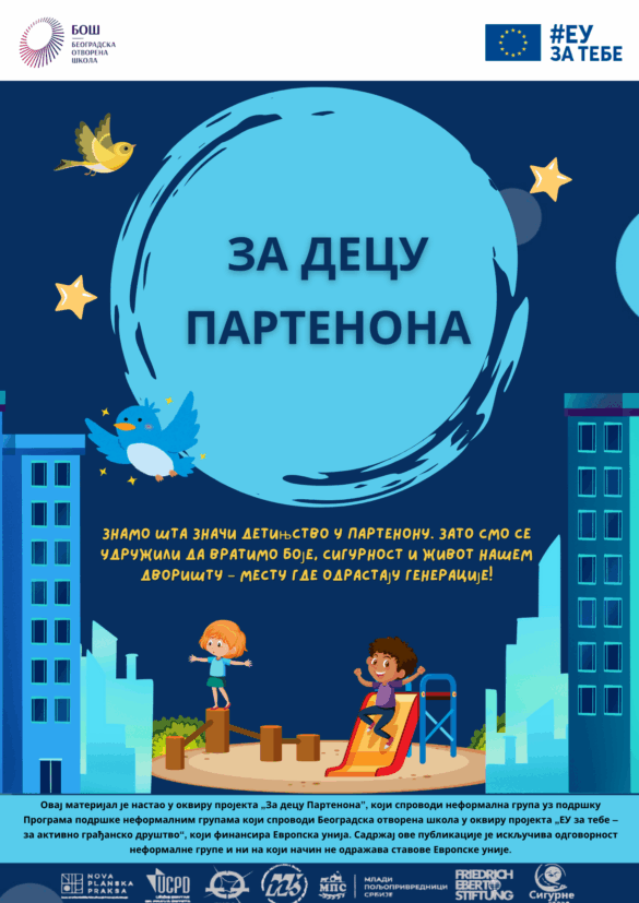 Projekat se realizuje u okviru projekta „EU Resurs centar za civilno društvo u Srbiji“ koji Beogradska otvorena škola sprovodi u partnerstvu s organizacijama civilnog društva: Novosadska novinarska škola, ENECA, Užički centar za prava deteta, Nova planska praksa, Sigurne staze, Mladi poljoprivrednici Srbije i međunarodnim partnerom, fondacijom Fridrih Ebert (Friedrich Ebert Stiftung). Projekat je podržan od strane Evropske unije i biće realizovan u periodu od 2023. do 2026. godine.