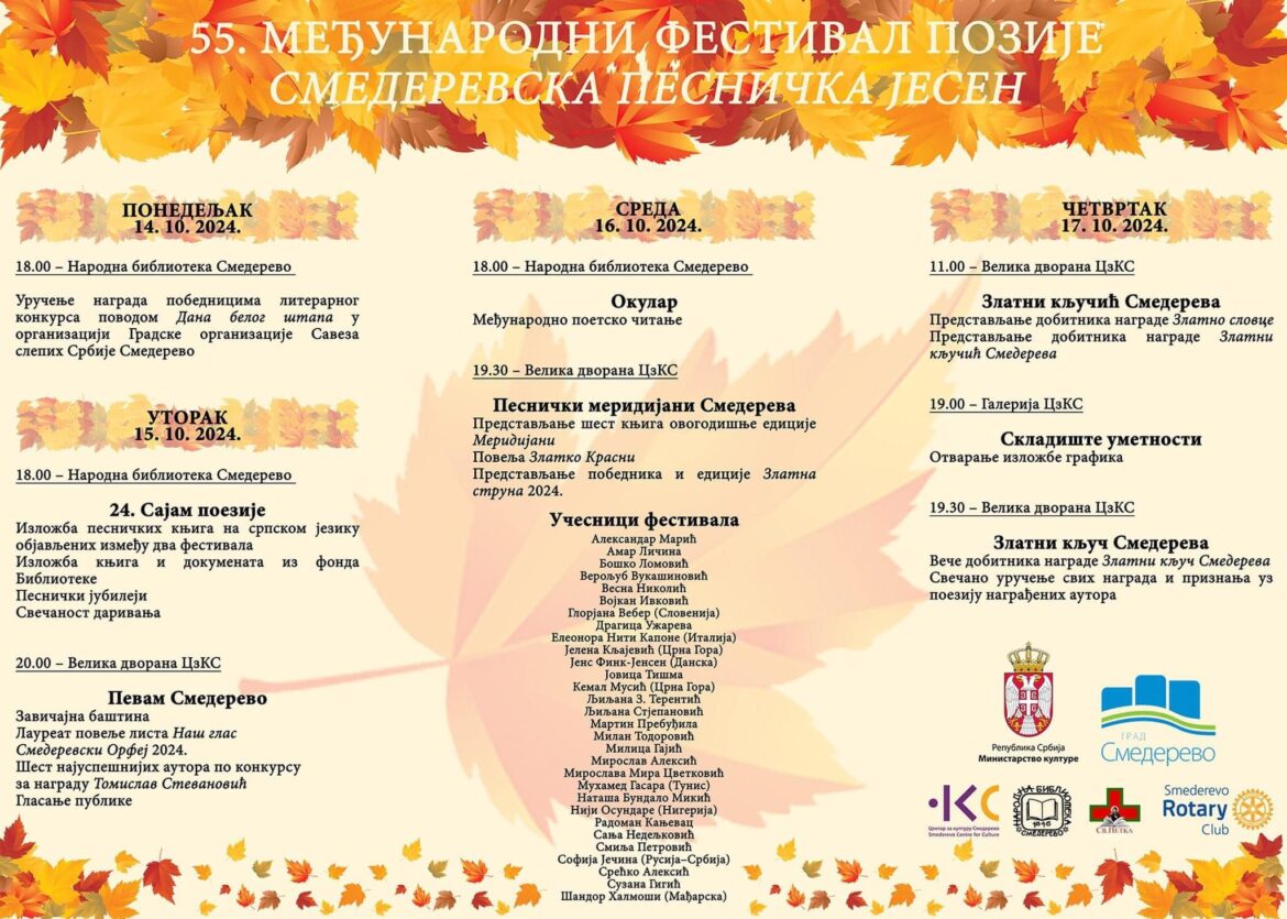 Početna » Počeo 55. Međunarodni festival poezije „Smederevska pesnička jesen“