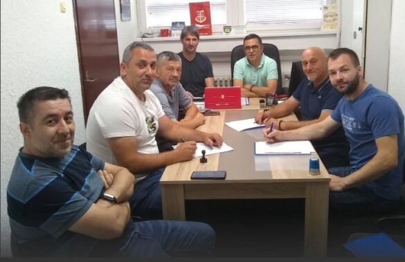 Fotografija: rukovodstvo saveza i predstavnici klubova učesnika baraža.