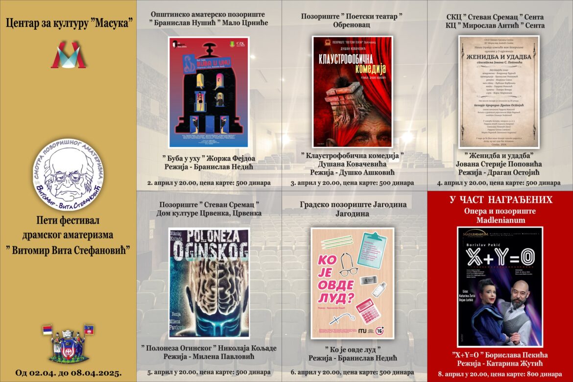 Od 2. do 8. aprila, u Centru za kulturu Masuka, održaće se peta smotra pozorišnog amaterizma „Vitomir –Vita Stefanović“. Peti festival, posvećen doajenu pozorišnog života Vitomiru Viti Stefanoviću, okupio je pet sjajnih predstava amaterskog pozorja.
