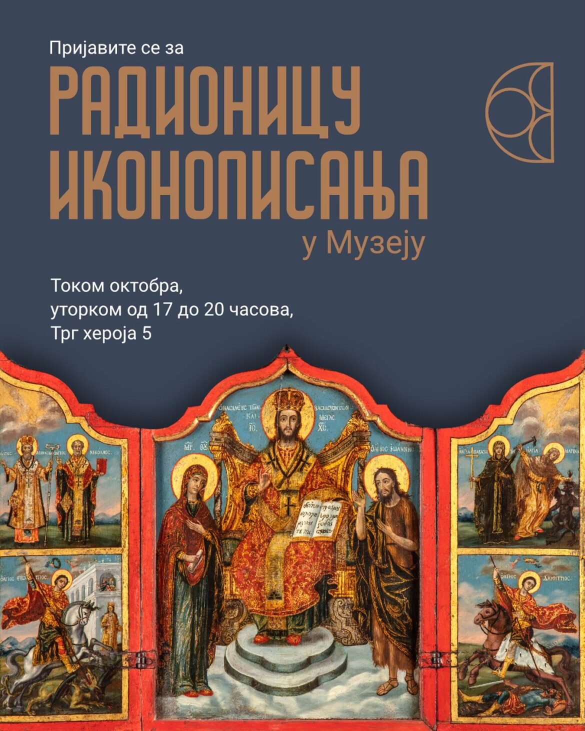 Narodni muzej iz Smederevske Palanke vas sa zadovoljstvom poziva na radionicu ikonopisanja u okviru izložbe „Pod zlatnim i plavim nebom“, koja predstavlja ikone grčkih majstora od XV do XIX veka iz Narodnog muzeja Srbije.
