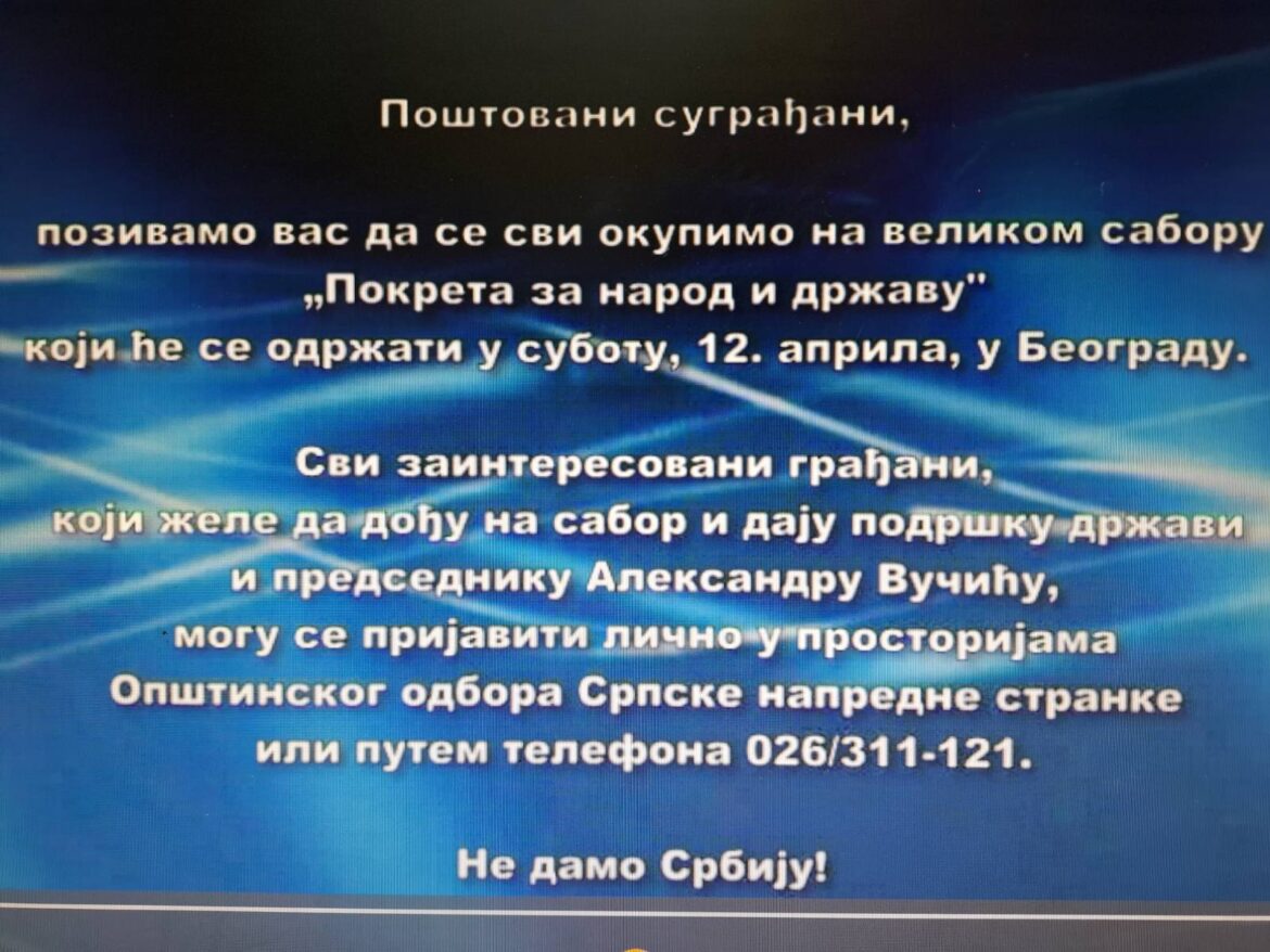 Društvo Poziv na veliki skup 12. aprila u Beogradu “Pokret za narod i državu” od RTV Jasenica 09/04/2025 09/04/2025 8 Podeli 0 FacebookTwitterTelegramViberEmail Prethodna vest Spartanci osvojili 24 medalje Naredna vest Školska godina može biti produžena najviše za pet dana Povezane vesti Prodajni bazar u OŠ „Đorđe Jovanović“ u Selevcu 05/11/2025 Direktor OŠ „Olga Milošević” Darko Dimitrijević na Erazmus... 05/11/2025 Slab mraz u četvrtak, do kraja sedmice oblačno... 05/11/2025 Danas je Međunarodni dan romskog jezika 05/11/2025 Nova stolarija za bolje uslove rada i veću... 05/11/2025 Obaveštenje za poljoprivredne proizvođače o pohađanju obuke „Bezbedno... 05/11/2025 Institut za povrtarstvo organizator skupa „Biotehnologija i savremeni... 05/11/2025 Učenici OŠ „Heroj Ivan Muker“ pogledali izložbu „Ukrasi... 04/11/2025 U OŠ „Stanoje Glavaš“ održana prezentacija projekta „Digital... 04/11/2025 Mehatroničari škole „Goša“ nagrađeni na konkursu kancelarije za... 04/11/2025