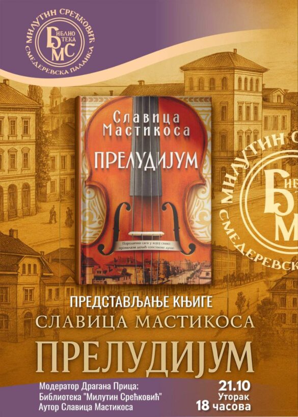 U utorak, 21. oktobra sa početkom u 18 časova, u prostorijama Biblioteke „Milutin Srećković“ u Smederevskoj Palanci, biće održano predstavljanje knjige „Preludijum“, novog romana autorke Slavice Mastikose.