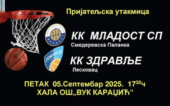 Košarkaški klub „Mladost SP“ iz Smederevske Palanke u petak, 5. septembra 2025. godine, odmeriće snage sa ekipom KK „Zdravlje“ iz Leskovca u prijateljskoj utakmici.