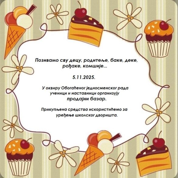 Društvo Prodajni bazar u OŠ „Đorđe Jovanović“ u Selevcu od RTV Jasenica 05/11/2025 05/11/2025 69 Podeli 0 FacebookTwitterTelegramViberEmail Prethodna vest Direktor OŠ „Olga Milošević” Darko Dimitrijević na Erazmus + mobilnosti na Kipru Naredna vest Jesenji raspust za učenike 10. i 11. novembra, nastava se nastavlja 12. novembra Povezane vesti Saradnja MUP-a i OŠ „Milija Rakić“: Edukacija o... 07/11/2025 Jesenji raspust za učenike 10. i 11. novembra,... 07/11/2025 Direktor OŠ „Olga Milošević” Darko Dimitrijević na Erazmus... 05/11/2025 Slab mraz u četvrtak, do kraja sedmice oblačno... 05/11/2025 Danas je Međunarodni dan romskog jezika 05/11/2025 Nova stolarija za bolje uslove rada i veću... 05/11/2025 Obaveštenje za poljoprivredne proizvođače o pohađanju obuke „Bezbedno... 05/11/2025 Institut za povrtarstvo organizator skupa „Biotehnologija i savremeni... 05/11/2025 Učenici OŠ „Heroj Ivan Muker“ pogledali izložbu „Ukrasi... 04/11/2025 U OŠ „Stanoje Glavaš“ održana prezentacija projekta „Digital... 04/11/2025