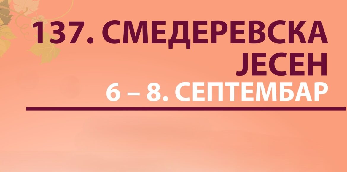 Tradiconalna turističko-privredna manifestacija „Smederevska jesen“, koja spada u red najstarijih turističko-privrednih manifestacija u Srbiji, održaće se ove godine u periodu od 6. do 8. septembra pod poznatim sloganom „Smederevo vazda otvoreno”.