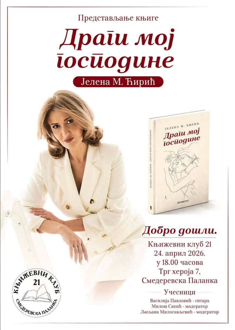 Promocija je zakazana za 24. april 2026. godine sa početkom u 18 časova, na adresi Trg heroja 7, u Smederevskoj Palanci.