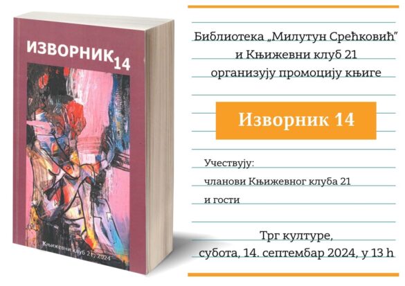 Biblioteka „Milutin Srećković“ i Kniževni klub 21 iz Smederevske Palanke organizuju promociju knjige „Izvornik 14”.