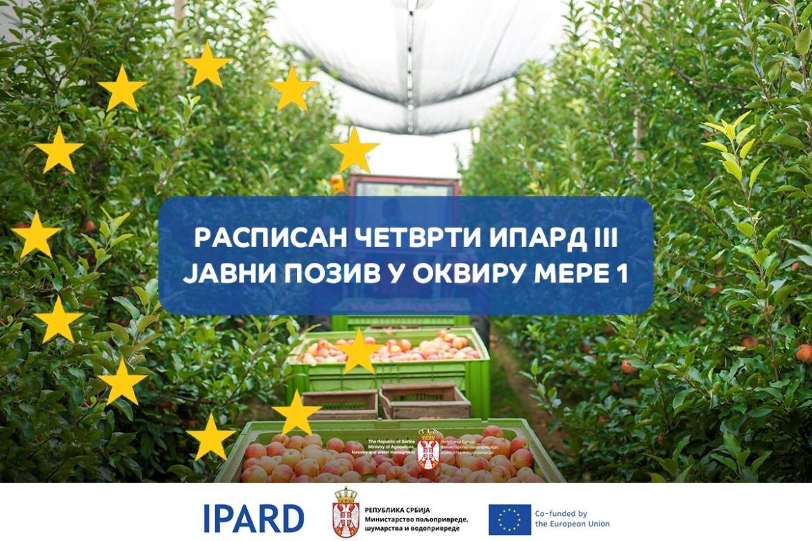 Ministarstvo poljoprivrede, šumarstva i vodoprivrede Vlade Republike Srbije – Uprava za agrarna plaćanja raspisala je Četvrti javni poziv za podnošenje zahteva za odobravanje projekta za IPARD podsticaje za investicije u fizičku imovinu poljoprivrednih gazdinstava u sektoru voća za podizanje višegodišnjih proizvodnih i matičnih zasada voća, kao i nabavku nove opreme za višegodišnje proizvodne i matične zasade voća u okviru IPARD III programa.