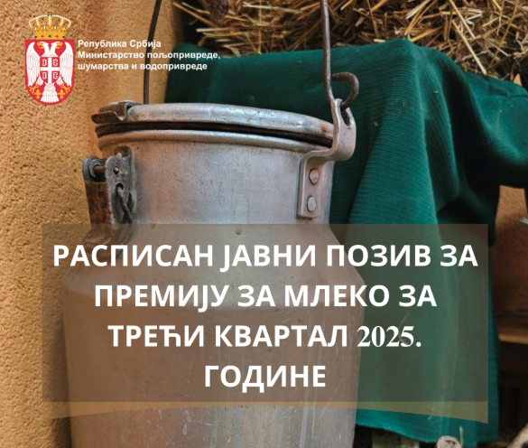 Uprava za agrarna plaćanja Ministarstva poljoprivrede, šumarstva i vodoprivrede raspisala je Javni poziv za podnošenje zahteva za ostvarivanje prava na premiju za mleko za treći kvartal ove godine.