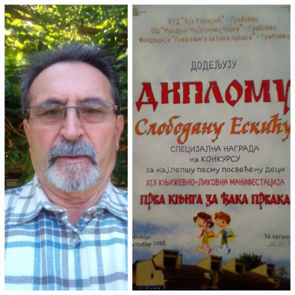 Na XIX književno-likovnoj manifestaciji „Prva knjiga za đaka prvaka“, održanoj u Grabovcu 10. oktobra 2025. godine, Slobodan Eskić, član KK 21 iz Smederevske Palanke, dobitnik je specijalne nagrade.