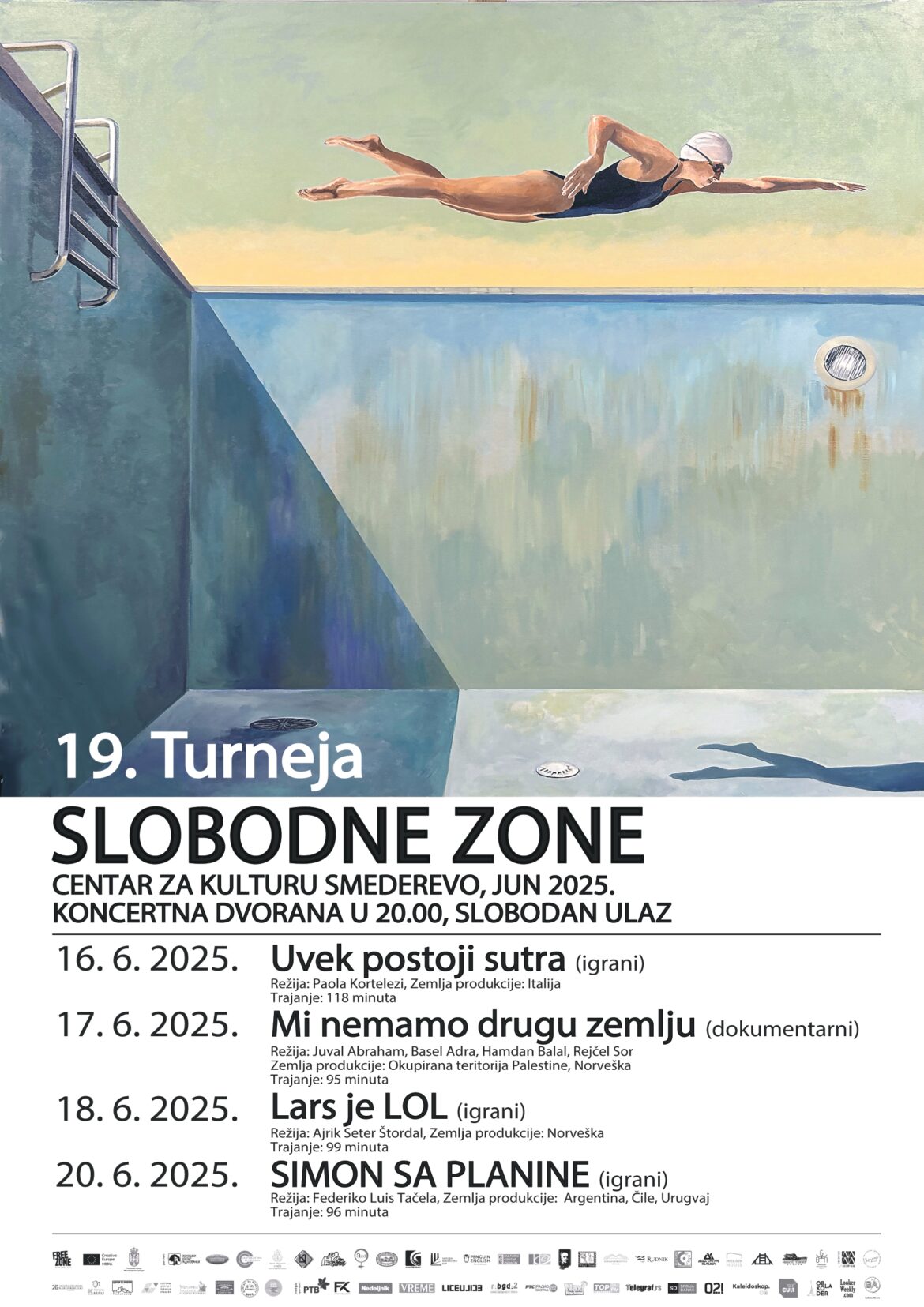 I ove godine, zahvaljujući ustaljenoj saradnji sa filmskim festivalom „Slobodna zona”, u Centru za kulturu Smederevo će, u okviru 19. turneje „Slobodne zone” biti prikazani filmovi koji su bili izuzetno zapaženi na globalnoj angažovanoj filmskoj sceni. Ovogodišnji izbor obuhvata tri igrana ostvarenja i jedan dokumentarni film. Radi se o filmovima koji su osvajali najveće nagrade i/ili pokazali izvanredan potencijal kod publike i kritike od Berlina do Kana i drugih velikih svetskih filmskih manifestacija. Filmovi koje donosi revija „Slobodne zone” bave se pitanjima ljubavi, identiteta, društvenih nepravdi, a svojim kvalitetom ulaze u vrh filmskog stvaralaštva. Filmovi će biti prikazivani od 20 sati u Koncertnoj dvorani, a ulaz na sve projekcije je slobodan.