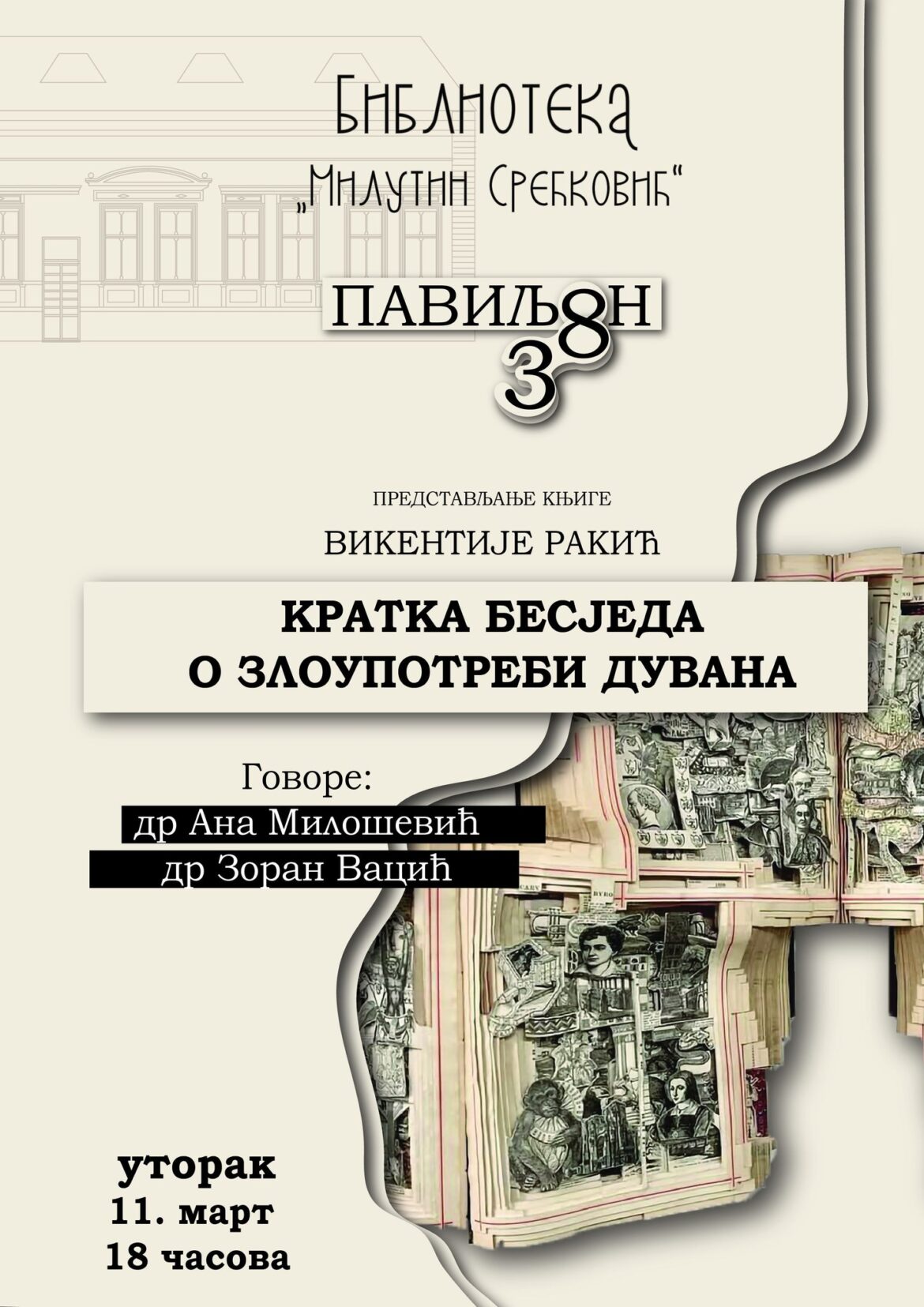 Sutra u 18 časova planirano je predstavljanje knjige „Kratka beseda o zloupotrebi duvana“ autora Vikentija Rakića.