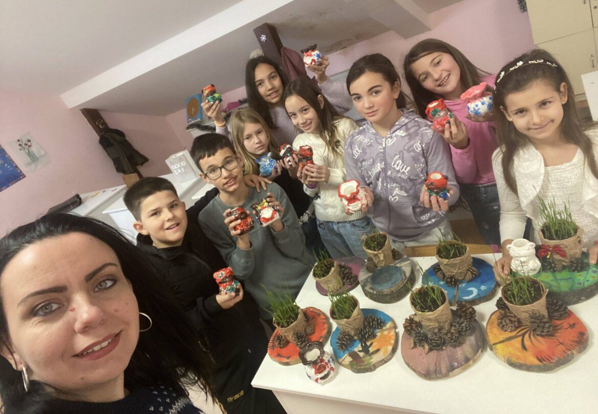Na radionici su sadili i gajili biljke, izrađivali božićne ikebane i oslikavali novogodišnje figure, koristeći maštu i kreativnost. Kroz igru, trud i zajednički rad pokazali su strpljenje i radost stvaranja.