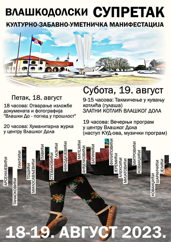 Jedna od aktivnosti udruženja je organizacija kulturno-zabavno-umetničke manifestacije „Vlaškodolski supretak”, koja će se održati 18. i 19. avgusta 2023. godine, u Vlaškom Dolu.